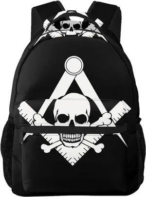 Gesey-R4T Cool Skull Freemason Logo Black Pattern Casual School Backpack Bag, Laptop Hiking Travel Shoulder Daypack College Bookbag for Men Woman Girls Boys Teens