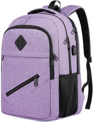 LOVEVOOK Laptop Backpack for Women, Water Resistant Travel Work Backpacks Purse Stylish Business Teacher Nurse Computer Bag with USB Charging Port,Purple Gray
