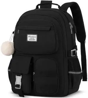 WINDARS School Backpack for Teen Girls, Cute Laptop Backpack for Women Students, Middle High School Bags Aesthetic Bookbag for College Travel Fit 15.6 Inch Laptop (Black)