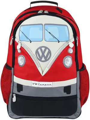 BRISA VW Collection - Volkswagen Hiking Laptop University Backpack in T1 Bus Campervan Design (30 L/7.9 gal/Large/Red)