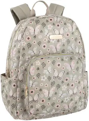 Jessica Simpson Womens Waterproof Laptop Travel Backpack with Side Water Bottle Pockets for College, Commuting, Work (Beige & Pink Butterflies)