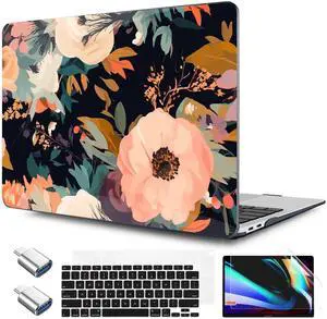 TWOLSKOO for MacBook Air 13.3 inch Case 2021 2020 2019 2018 Release M1 A2337 A2179 A1932 with Touch ID, Plastic Hard Shell Case & Keyboard Cover & Type C Adapter, Bright Abstract Flowers