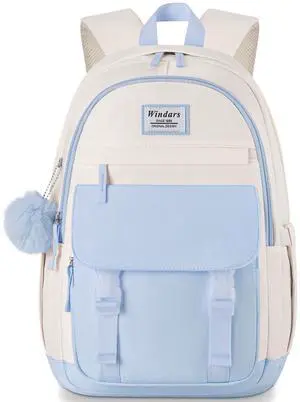 WINDARS School Backpack for Teen Girls, Cute College Backpacks for Women Students Aesthetic Bookbag Large 15.6 Inch Laptop Bag Middle School Travel Back Pack (Blue Beige)