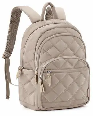 BAGSMART Travel Laptop Backpack, College Backpack for Women, Quilted Small Computer Bookbag, Water-Resistant 15.6 Inch Laptop Casual Bag, Beige