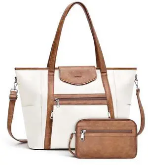 SYTRAH Laptop Bag for Women Designer Leather Laptop Backpack Purse, 16 inch Computer Tote Bags for Work Travel with Satchel Purse Beige Brown