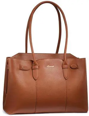 AJI Laptop Tote Bag for Women, Water-Resistant 15.6Inch Laptop Tote Bag with Zipper&Multi Pockets,Lightweight Casual Shoulder Bag with Luggage Trolley Strap for Work/Travel/College/Daily,Caramel Brown