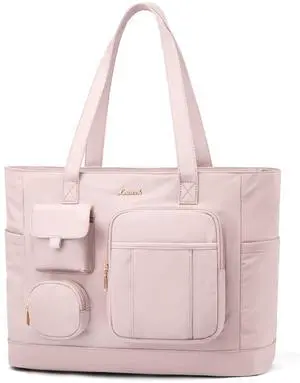GOLF QUALITY Tote Bag for Women, Work Bags with Zipper Computer Laptop Handbag with Compartments for Travel, Daily,Fit 14Inch,Pink