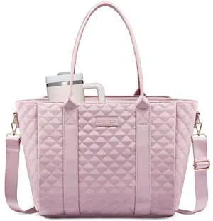 LOVEVOOK Laptop Bag for WomenWork Bag Teacher Tote Bag With Large Cup Holder, Quilted Crossbody bag with Zipper for Travel