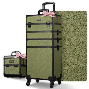Byootique Rolling Makeup Train Case Cosmetic Trolley Organizer Salon Rococo Moss