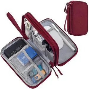 Electronic Cord Organizer Travel Case, Travel Cable Organizer Bag, Waterproof Electronic Accessories Carry Pouch for Cable, Cord, USB, Charger, Phone, Power Bank, Earphone (Wine Red, Medium)