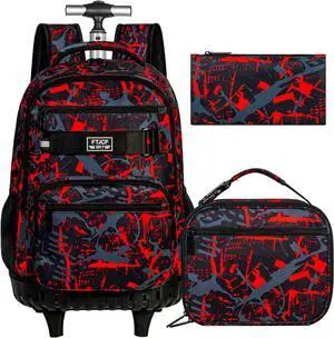 3Pcs Rolling Backpack for Boys Men, Travel Wheeled Backpacks for Adults, Teens College Roller Bookbag with Wheels for Men(Red)