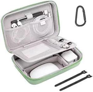 MOSISO Electronic Organizer Travel Case Compatible with MacBook Power Adapter, Compatible with Magic Mouse & Pencil, SD Card, USB Flash Disk with 4 Modular Insert & 2 Cable Tie & Snap Hook, Green