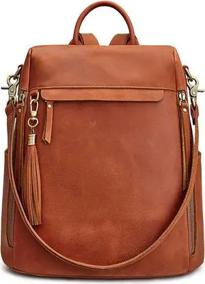 S-ZONE Women Vintage Genuine Leather Backpack Purse Anti-theft Fashion Travel Daypack