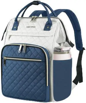 EMPSIGN 17 Inch Laptop Backpack for Women, Work Business Travel Computer College Bags, Large Capacity Water-repellent Quilted Casual Daypack with USB Port, Beige-Haze Blue