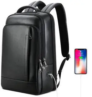 BOPai Genuine Leather Backpack for Men Multi-Function Backpack 15.6 inch Business Laptop Backpack Travel Smart Rucksack with USB Charging Anti Theft Backpack Office Black