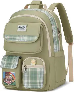 Girls School Backpack,Cute Book Bag with Laptop Compartment for Teens Aesthetic Laptop Back Pack for Middle High School Students,Mochila para Ninas,Green