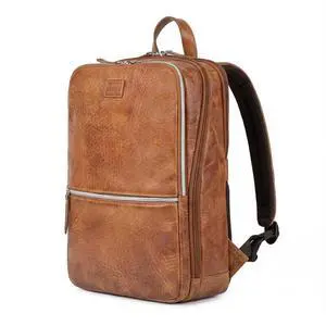 LEATHER VILLAGE Leather Laptop Backpack for Men ^^ Cognac ^^ Slim Professional Business Bag Fits 15.6-Laptop ^^ Water-Repellent Work & Travel Daypack with Trolley Strap