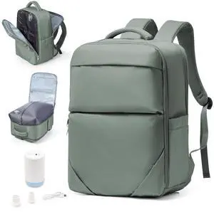 Vacuum Backpack Travel for Women Men, Travel Backpack with Vacuum System, Small Compression Backpacks Flight Approved, Travel Vacuum Bags with 14inch Laptop Compartment, Contain Pump, Green