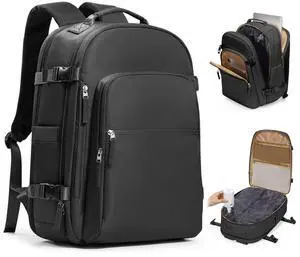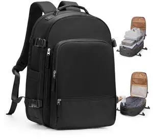 HOMIEE Travel Backpack with Vacuum Compression Space Saving Storage Bags and Hand Pump, 18x14x8 inches Carry on Personal item Bag, Black