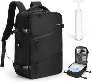 Vacuum Travel Backpack with Pump,Personal Item Carry on Backpacks Flight Approved 18x14x8 inches Men Women, Laptop Waterproof Work Compression bags hiking Casual Daypack 60L Water Resistant Luggage