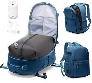 Vacuum Backpack Travel with Pump Women, Carry On Laptop Compression Backpacks Flight Approved, Mochila de Viaje Compresion al Vacio, Waterproof Travel Backpack with Vacuum System Men(blue)