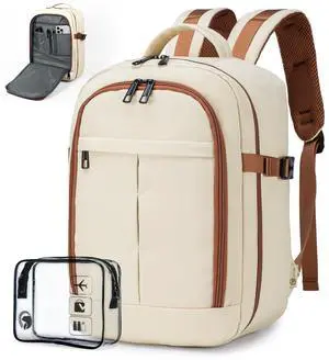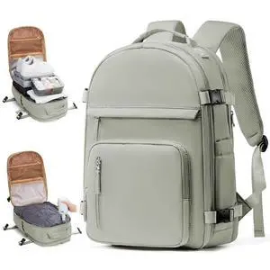 Vacuum Travel Backpack with Pump for Women,Personal Item Carry on Backpacks Flight Approved 18x14x8 inches for Men,Laptop Waterproof Work Compression bags Casual Daypack Beige.