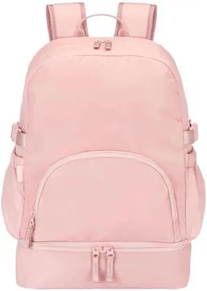 Bentgo 2-in-1 Adult Backpack & Insulated Lunch Bag Lightweight, Water-Resistant Travel Backpack with 9 Compartments, Laptop Sleeve & Trolley Sleeve for Work & Everyday Use (Soft Blush)