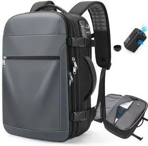 Vacuum Backpack Travel 60L Expandable Vacuum Seal Compression Travel Backpack with Pump, TSA, Waterproof Oxford,17" Laptop Compartment,Carry On Backpack for Men & Women,Business,Flight Travel (Gray)