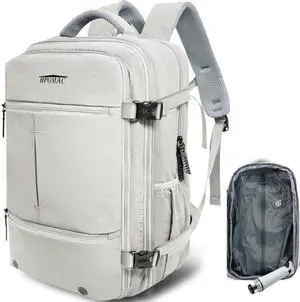 Vacuum Travel Backpack for Women, Personal Item Carry on Vacpack Backpacks Airplane Essentials Approved 18x14x8 inches for Men,Laptop Waterproof Work Compression bags Casual Daypack,Beige