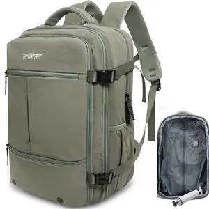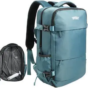 Vacuum Travel Backpack with Pump for Women,Personal Item Carry on Backpacks Flight Approved 18x14x8 inches for Men,Laptop Waterproof Work Compression bags Casual Daypack Green.