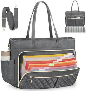 RAINSMORE Teacher Tote Bag 15.6 Inch Laptop Bag for Women Work Bag with Accordion File Organizer Pocket & Insulated Pocket Nurse Bag College Laptop Tote Bag for Women Computer Briefcase Work Tote