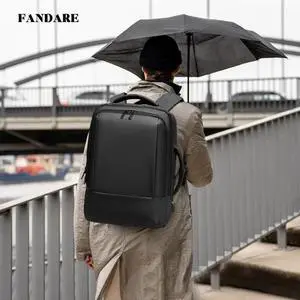 FANDARE Business Casual Backpack Laptop backpack Travel backpack Rucksack for men Laptop Rucksack Work bag Waterproof rucksack Expandable Backpack with USB Charging Port PU film Daypacks Black