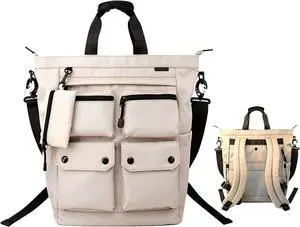 NOBLEMAN Convertible Beige Laptop Backpack Purse for Women Travel Work, 3 In 1 Tote Backpack Convertible Bag Daypack for Work, Daily, Travel