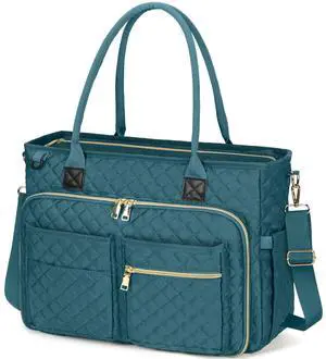 RAINSMORE Teacher Tote Bag 17.3 inch Laptop Bag for Women Work Bags Laptop Tote Nurse Bag Professional Computer Messenger with Insulated Pocket Briefcase, Teal
