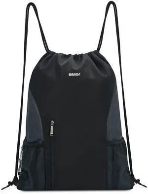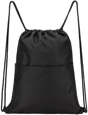 Drawstring Backpack Water Resistant String Bag Sports Sackpack Gym Sack with Side Pocket for Men Women - Black