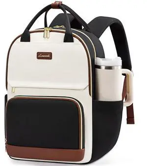 College Laptop Backpack, Travel Backpack for Women, Quilted Casual Daypack, Water-Resistant Bookbag for 15.6 Inch Laptop, Black