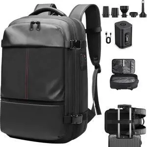 NYFEIZI Vacuum Backpack Travel, Expandable Air Compression System, Airback Vacpack Backpack TSA Lock Water Resistant Carry-On Luggage Black with Air Pump