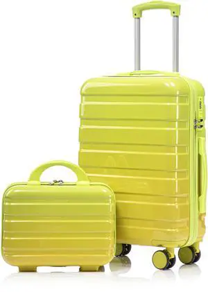 14"/20" 2 pcs/set in PC Spinner Wheel Luggage, Carry on Suitcase, With Gradient Color and Combination Lock(Yellow+Green)