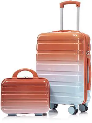 14"/20" 2 pcs/set in PC Spinner Wheel Luggage, Carry on Suitcase, With Gradient Color and Combination Lock(Blue+Yellow)