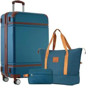 Hardshell Luggage Sets with Bags Lightweight Suitcase Double Spinner Wheels with TSA Lock ,Single Vintage Luggage 28 IN,Blue