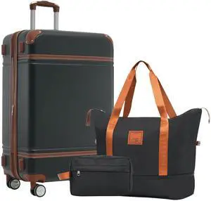 Hardshell Luggage Sets with Bags Lightweight Suitcase Double Spinner Wheels with TSA Lock ,Single Vintage Luggage 28 IN,Black