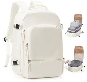 Lovvento Air Vacuum Compression Travel Backpack: Expandable Beige Carry On Bag Vacuum with Pump Fits 17.3 inch Laptop for Women & Men - Suitable for Business, Camping and Work Water-resistant