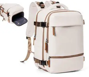 Taygeer Backpack for Women, College Backpack with Laptop Compartment & Shoe Pouch, 40l Travel Laptop Mochila Carry On Luggage, Airline Approved Personal Item Bag for Weekender Gym Hiking, Khaki White