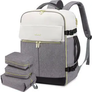LOVEVOOK Travel Backpack for Women, TSA Carry On Backpack Flight Approved Luggage, 40L Water Resistant Personal Item Daypack Large Weekender Bag fit 17 inch Laptop with 3 Cubes, Beige Grey