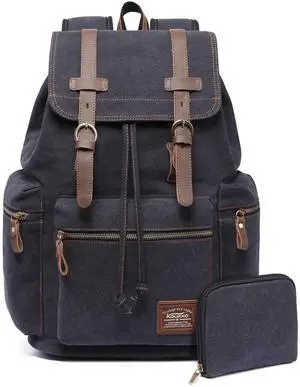 KAUKKO Vintage Casual Canvas and Leather Rucksack Backpack