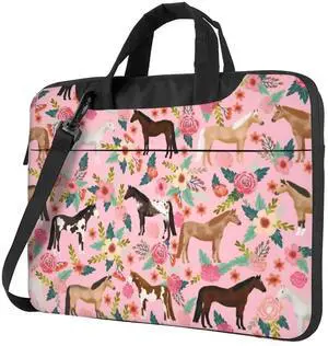 Soft 14 Inch Horses Floral Horse Farm Animal Pets Flowers Laptop Sleeve Bag Protective Shoulder Laptop Shoulder Messenger Bag Briefcase Bag Case Sleeve Handbag For Notebook Women With Adjustable Strap