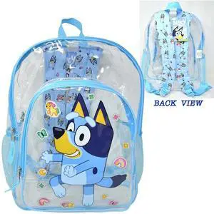 Bluey 16" Clear Backpack for Kids Transparent Bag with 2 Side Mesh Pockets