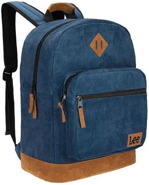 Lee Authentic Jeans Company Study Backpack for Class, Padded Laptop Sleeve Fits 15.6 Inch Notebook (Blue Corduroy)