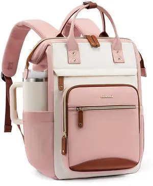 LOVEVOOK Laptop Backpack for Women Work Bag with Large Capacity Cup Side Pocket, 15.6 Inch Waterproof Computer Backpacks (Pink, 15.6INCH)