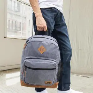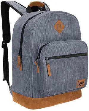 Lee Grey Corduroy Backpack for Boys and Girls, Authentic Jeans Company Study Daypack with Padded Laptop Sleeve Fits 15.6 Inch Notebook
